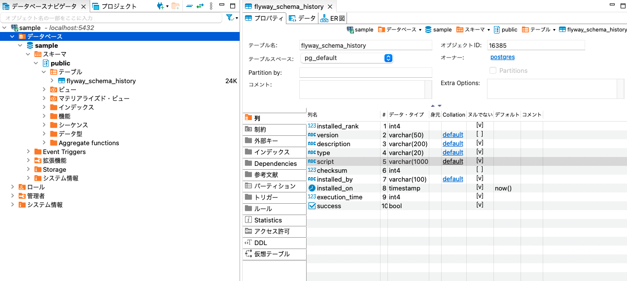 Flywayで使用しているスキーマの情報をすべてドロップする。
